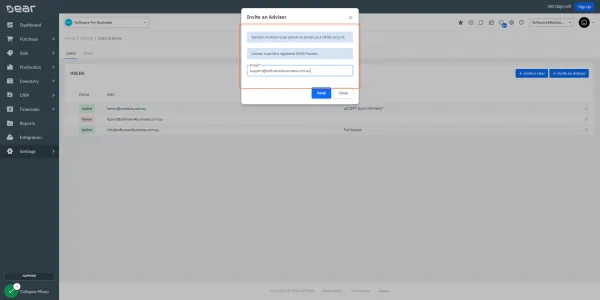 How to invite us as Advisors to your Dear Systems