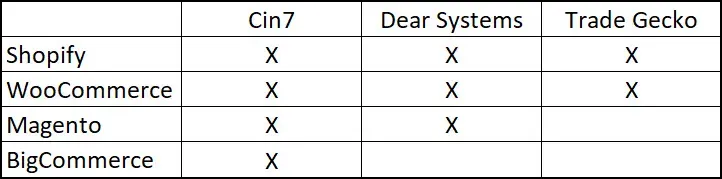 If you are considering moving to a B2C platform that integrates with Dear Systems, this section is for you. You will be glad to know that Dear Systems offers the same options as Cin7, except for BigCommerce. So three major players can work as your preferred B2C provider.